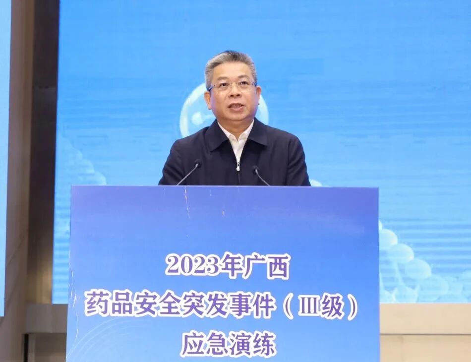 11月13日,2023年广西药品安全突发事件(Ⅲ级)应急演练在北海举行。自治区药品安全委员会办公室主任、mg老虎机游戏:党组书记、局长黄琛出席并讲话,北海市委常委、常务副市长、市食品药品安全委员会常务副主任谭秀洪出席并致辞。亚博游戏官网:高级研修学院(亚博游戏官网:安全应急演练中心)专家邵琳莅临现场指导点评。mg老虎机游戏:党组成员、副局长沈宏睿主持演练活动。