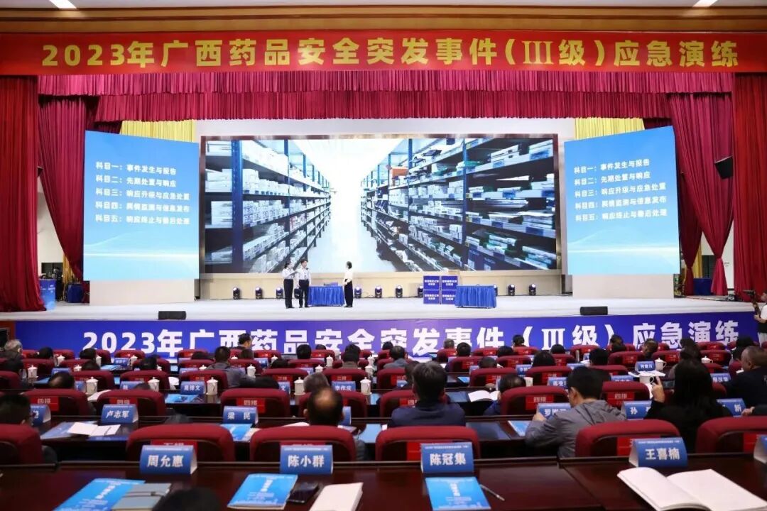 本次演练由自治区药品安全委员会办公室、mg老虎机游戏:、北海市人民政府主办,北海市食品药品安全委员会办公室、市场监管局承办。演练模拟一全国性体育赛事活动期间,承办地北海市某卫生院输液病人发生群体不良反应,个别运动员使用注射液引起不良反应导致事态升级,由此引发的较大药品安全突发事件,启动Ⅲ级应急响应。演练采取短片播放、现场演示的方式进行。对照《广西壮族自治区药品和医疗器械安全突发事件应急预案》,演练共分为五个科目,细化成20个场景,从事件发生与报告、先期处理与响应、响应升级与应急处理、舆情监测与信息发布、响应终止与善后处理进行全过程完整演示。较好地实现了检验预案、磨合机制、规范程序、锻炼队伍的目的,为药品安全突发事件应急处置提供范本。